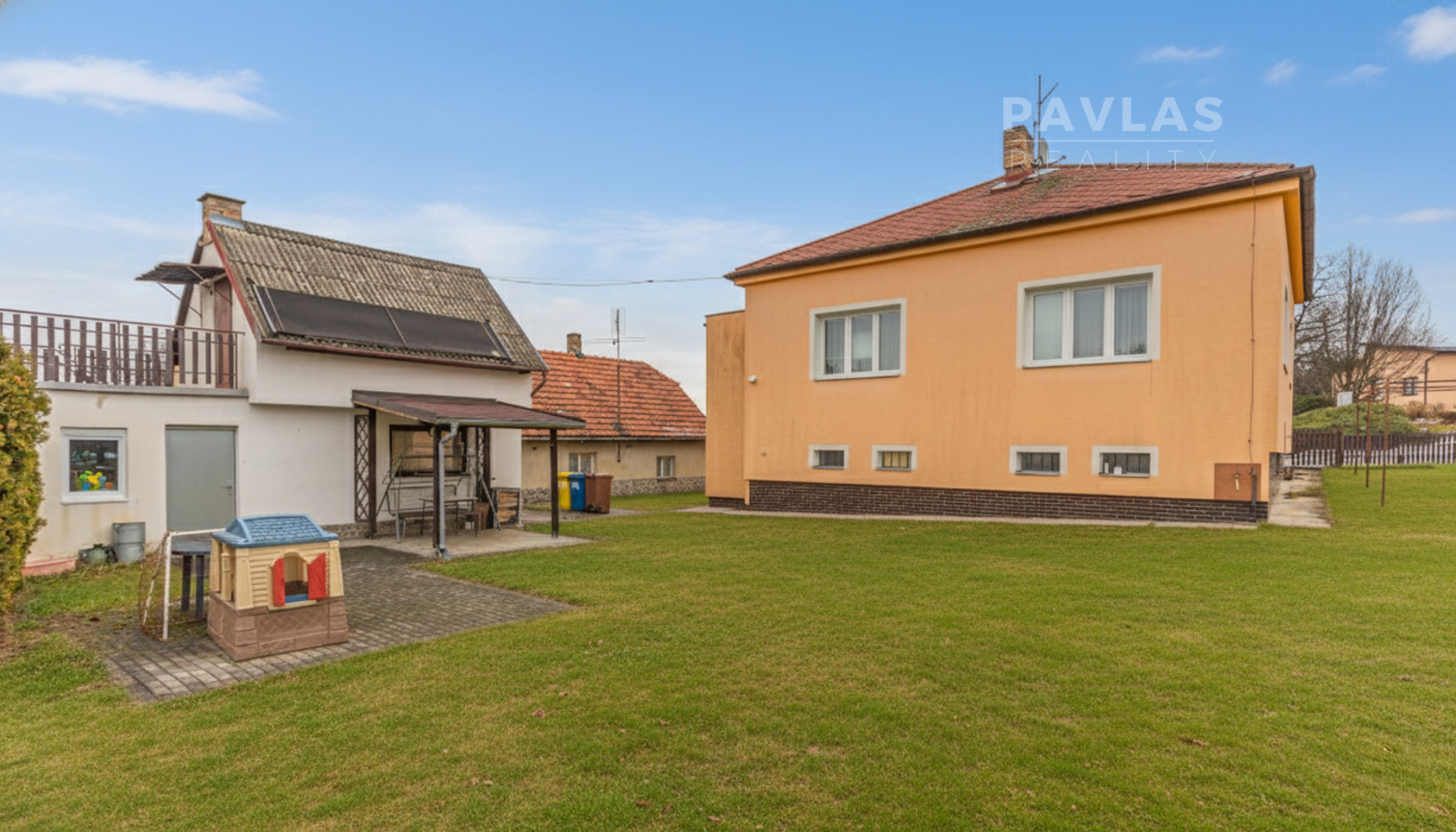 Předmětem prodeje je rodinný dům s dispozicí 3+1,5. Užitná plocha dosahuje celkem 181 m², která se skládá z obytné plochy 92 m² a rozsáhlého suterénu s garáží o výměře 89 m². Dům je sice klasickou, velmi udržovanou stavbou, ale poskytuje novému majiteli skvělou možnost k modernizaci a rekonstrukci vnitřních prostor dle vlastních představ, čímž snadno zvýší hodnotu celé nemovitosti. Naprostou předností domu je instalovaný osobní výtah, který významně usnadňuje pohyb mezi patry a činí dům ideálním pro seniory nebo rodiny pečující o starší rodiče. Celý dům je posazen na pozemku o výměře 797 m² a o úsporu energie se stará zateplení fasády 10 cm polystyrenem. Vytápění je zajištěno plynovým kotlem a napojení na obecní sítě (voda a kanalizace) je samozřejmostí.