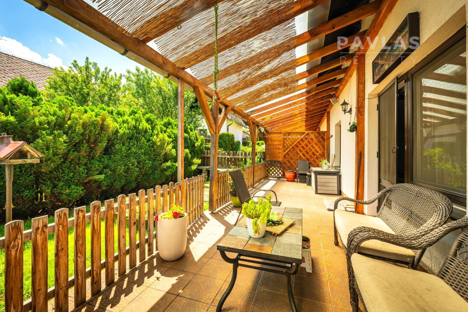 Pohodlí doplňují i garážová vrata a vjezdová brána na dálkové ovládání a dvojgaráž v suterénu. Z prostorné, zastřešené terasy si vychutnáte klid a soukromí po celý rok.